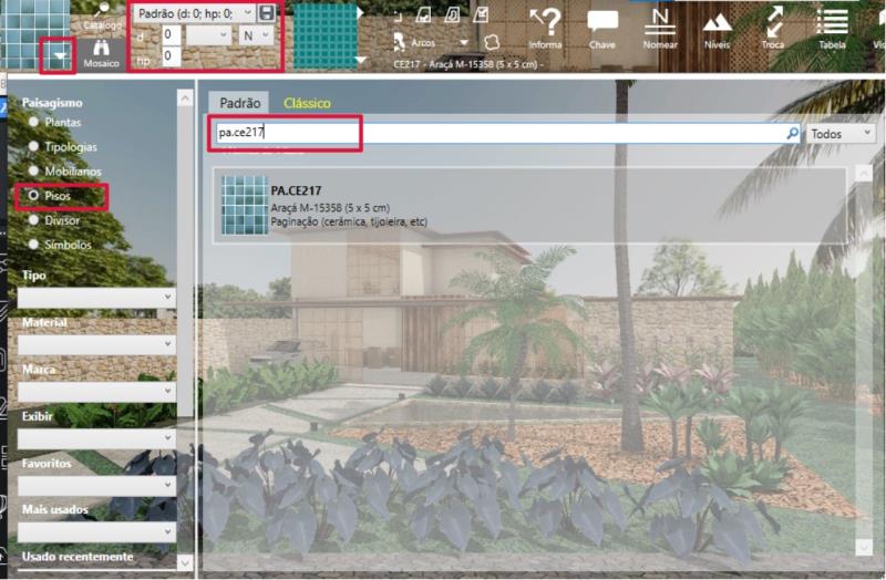 Antes de pensar en el agua, que posiblemente sea la primera palabra que nos viene a la mente cuando hablamos de piscinas, debemos crear primero el suelo. Para ello, vamos a nuestro catálogo, a la pestaña de suelos y seleccionamos un suelo para nuestra piscina. En este ejemplo utilizaré el suelo Araçá, que en nuestro catálogo tiene el código PA.CE217.