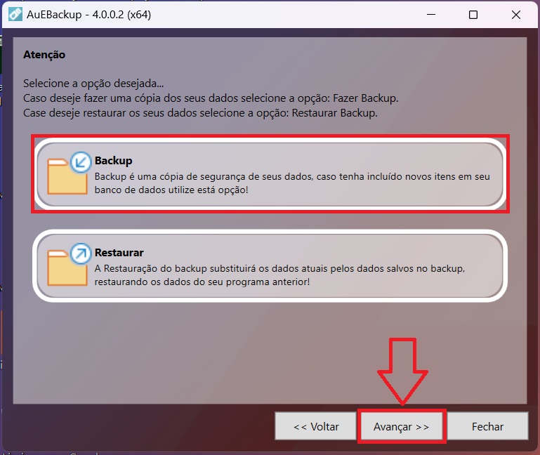 Aparecerá una nueva ventana. En ella, selecciona la opción Copia de seguridad y haz clic en Siguiente.