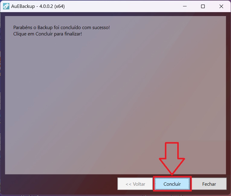 Cuando finalice la copia de seguridad, aparecerá un mensaje Aceptar, haga clic en Siguiente y se abrirá una nueva ventana. Haz clic en Finalizar. Ya está. Una copia de tus archivos se guardará en tu ordenador.