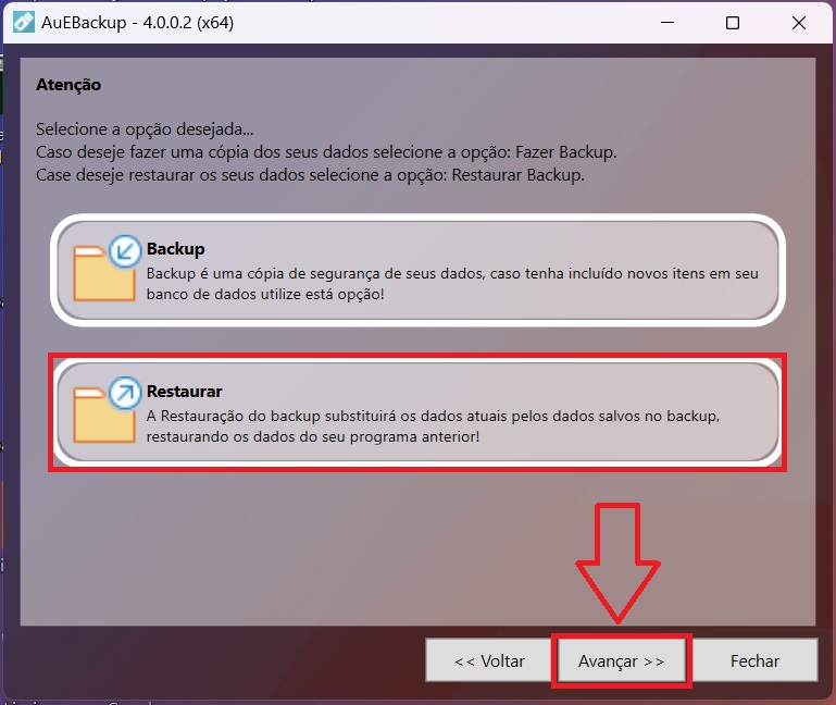 Ahora vamos a aprender a restaurar la copia de seguridad. Para ello, ve al mismo lugar donde hiciste la copia de seguridad, pero esta vez selecciona la opción Restaurar. Luego haz clic en Siguiente.