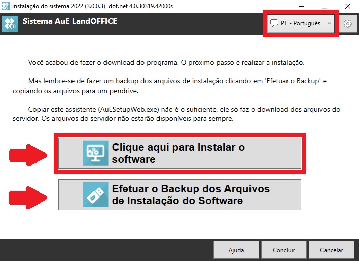 4. Una vez finalizada la descarga, aparecerá la pantalla para realizar la copia de seguridad e instalar el sistema AuE 2022.