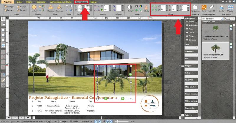 Comencemos con la aplicación de sombra de forma convencional. Inserte un elemento en el proyecto. En este ejemplo, utilizaremos una palmera cola de zorro.