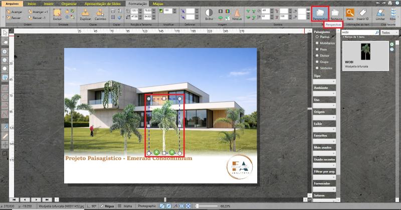 A continuación, vuelva a insertar el mismo mapa en el proyecto. Con el elemento seleccionado, acceda a la pestaña Formato y utilice la herramienta Perspectiva.